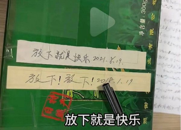 但家里人都不太支持他这样做,他们觉得研究数学又挣不到钱,不知道有什么用。在家人的反对声中,爷爷内心感到挣扎和纠结,很受折磨,他强迫自己不去想数学。所以他在盒子上贴了两行字,告诉自己要放下。但他脑子里一直浮现数学,还是放不下。这次他把手稿交给我,可能是因为我之前帮了他,他觉得我是一个好人,会好好对待他的宝贝。
