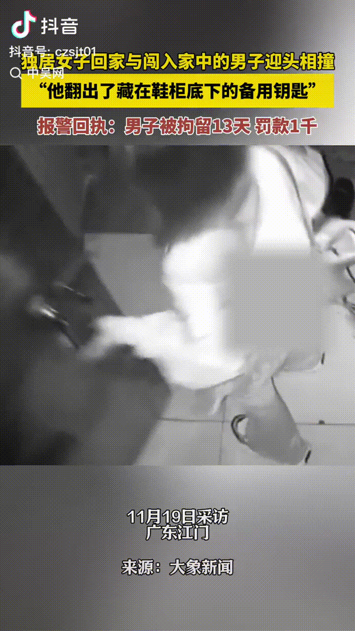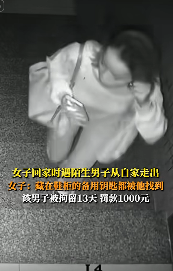 警方到达后,调取了门口的监控,发现男子是发现了鞋柜里的备用钥匙,趁着没人打开进入,随后警方将男子行拘了13天,还罚款1000元。