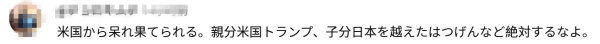 还有网民怒斥:"美国听了都得一惊。不准再发表那种把日本当成特朗普附庸、连跟班都不如的言论。"