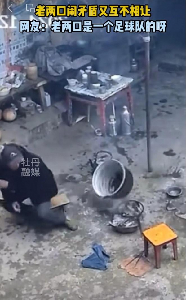 12月2日,云南,一段老两口闹矛盾互不相让,一口锅当足球踢。网友说,长期生活在这样的家庭里,好窒息啊。