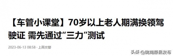 第1点:70岁以上老人期满换领驾驶证,需先通过"三力"测试