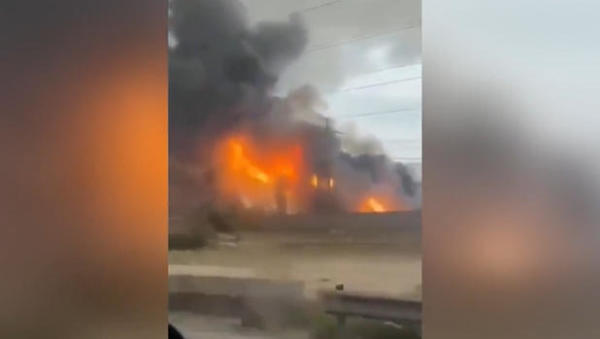18日,伊朗南帕尔斯天然气田遇袭后起火 视频截图