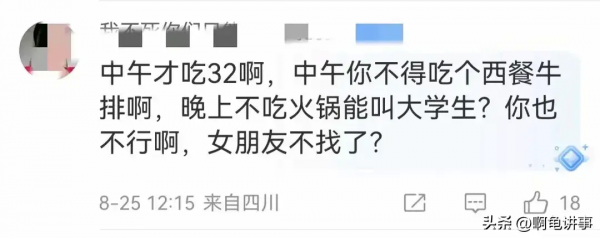 近日,一则关于大连某大学生日常伙食账单的帖子在网络上迅速走红,引发了广泛讨论。早餐15元,午餐32元,晚餐16元,外加水果15元和矿泉水12元,一天下来,这位大学生的伙食费竟然轻松破百!这样的消费水平,在大学生群体中究竟算奢侈还是合理?