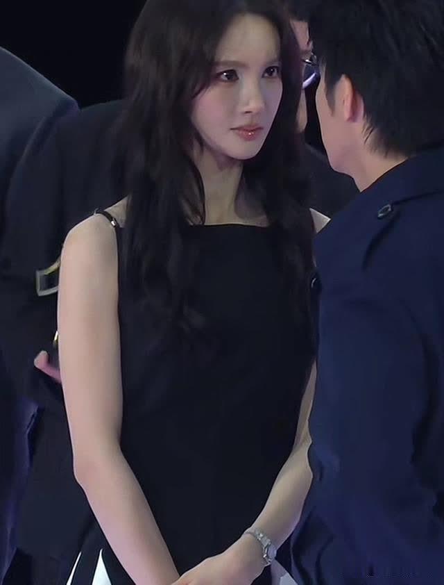小短裙和夏日正配,她高挑白皙,这次鼻子也不突兀了,妆容精致,多了几丝甜美感。
