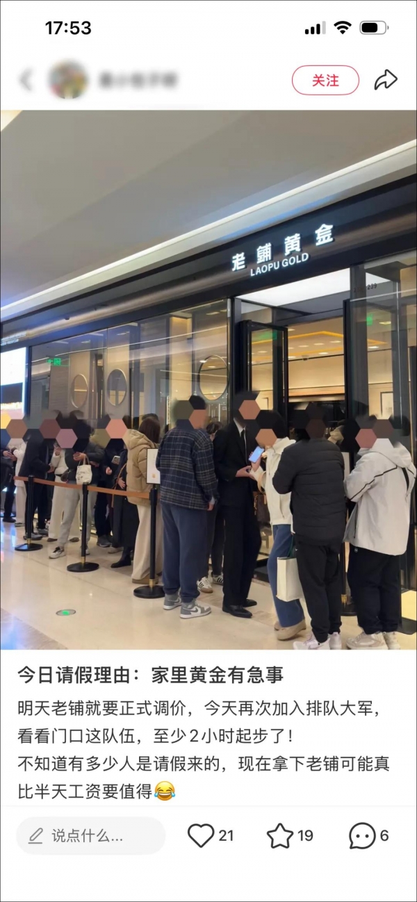 "从店里出来时已经10点了,商场已经打烊,老铺门口还排了不少人。"陈小姐说。柜姐告诉她,这两天店里打烊最晚的一天是凌晨1点多。