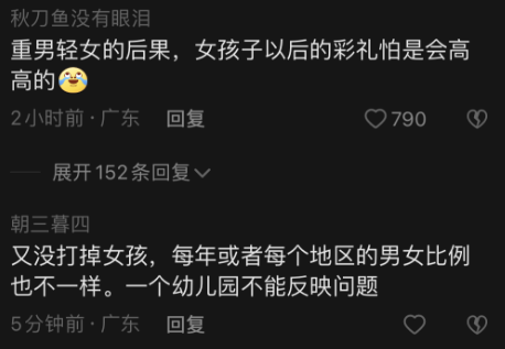 生育率下降已经是一种必然的趋势,这跟经济环境、教育成本等多方面因素相关。但是,需要引起关注的不仅仅是出生人数的问题。重男轻女的思维在以往的时代可能比较明显。
