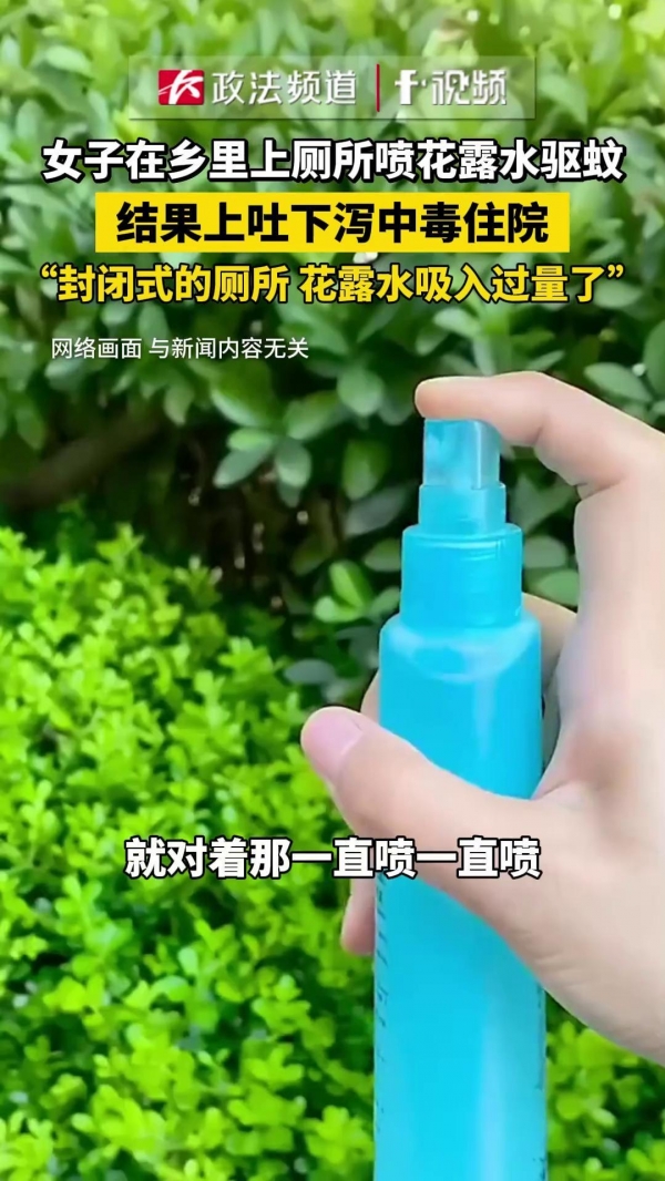 没想到,厕所空间狭小,花露水一喷就是一大瓶,结果空气中的化学成分浓度飙升,女子不幸吸入过量,出现了恶心、呕吐等中毒症状。