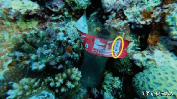 仁爱礁水下出现的可乐瓶,条形码以480开头,产地菲律宾(图源:中国自然资源部)