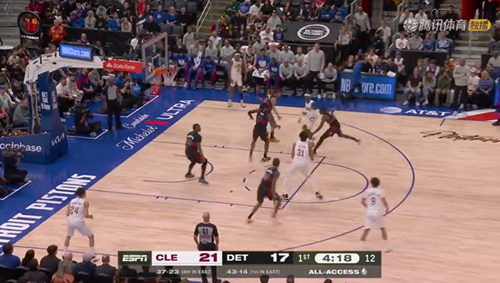 次节再战,梅里尔先拿到三次罚球,每一罚都稳稳罚中,领先11分了,骑士进行人员轮换,杜伦、坎宁安连续拿分,帮助活塞缩小分差38-40,活塞攻势不减,咬住比分,随着哈里斯上篮得手,活塞首次追平44-44,活塞几次进攻不得分后暂停,本节最后1分钟,,活塞还是没有得分,半场结束,骑士54-50活塞。半场,骑士队,阿伦13分,梅里尔11分,莫布利10分。活塞队,坎宁安17分,杜伦11分。
