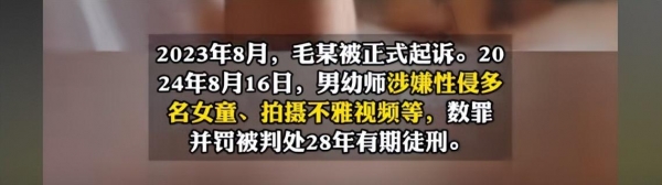 这些女童最小的才2岁,很难想象,她们在遭受侵犯时内心有多么的恐惧,可做出这种行为的男幼师,却逍遥了如此之久。更让人难以接受的是,直到2024年8月16日,男幼师因性侵多名女童、拍摄不雅视频等罪数罪并罚,被判处28年有期徒刑。
