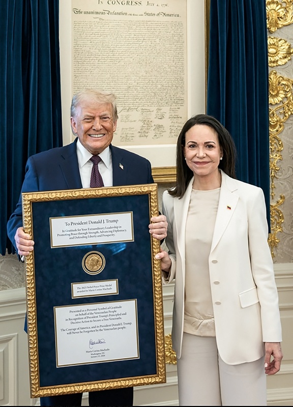 特朗普从获奖者马查多手中"笑纳"梦寐以求的诺贝尔和平奖