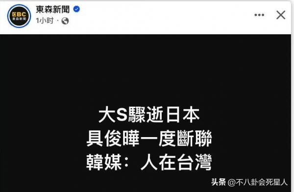具俊晔的行踪就也有可疑之处,他在大S离世后,有一段时间是处在失联的状态,彼时韩媒透露消息称,当时具俊晔人在台湾,而并非是在日本。