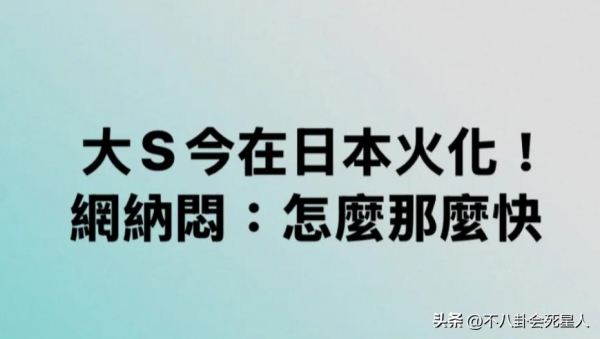 大S的离世确实太过突然了,短短几天的时间便天人永隔,而最让外界难以理解的是,为何2日离世,3日就已经匆忙火化了,时间和决定都过于仓促了。