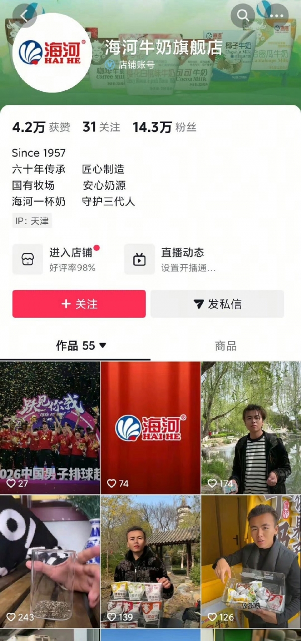 与此同时,海河乳品宣布对全渠道授权经销店铺直播间展开全面排查,规范直播与人员管理,完善内容审核流程,并公开监督邮箱接受消费者监督。天津市滨海新区市场监督管理局回应称,已收到相关反映,正依法核实处理。
