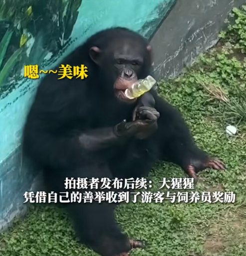 哇,这只猩猩真乖,最后那个动作太聪明了,应该给予奖励!