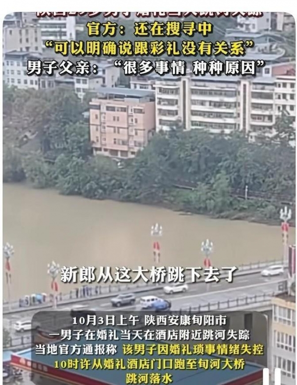新郎跳下旬河大桥后,超过三十小时搜救仍无结果。