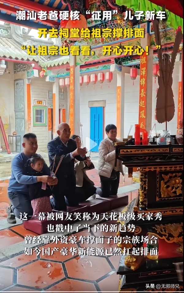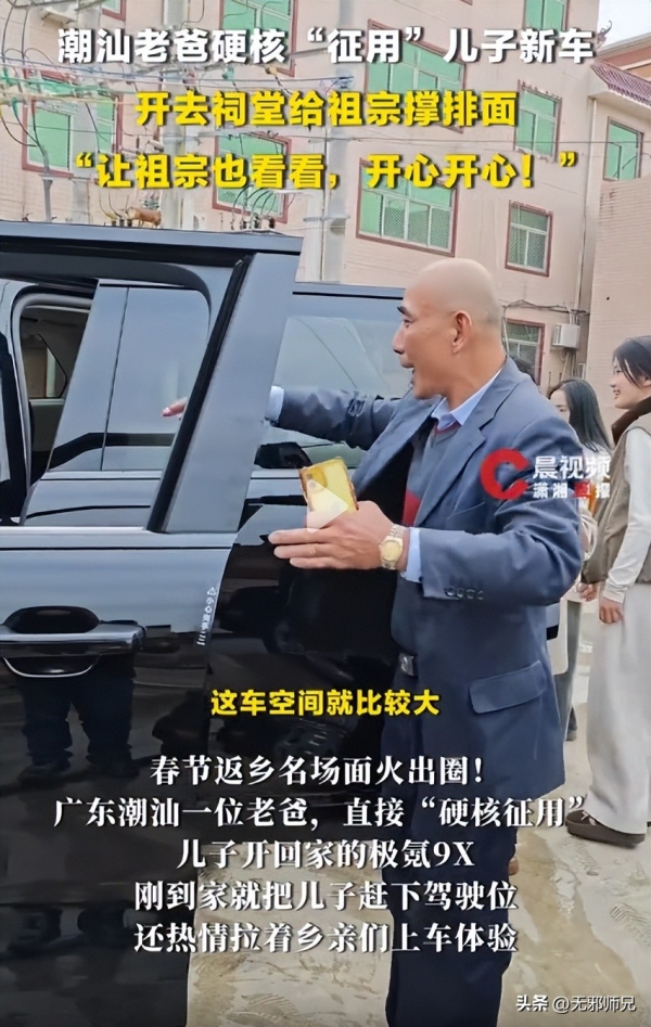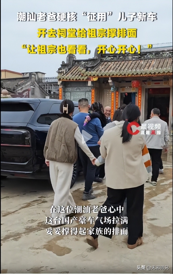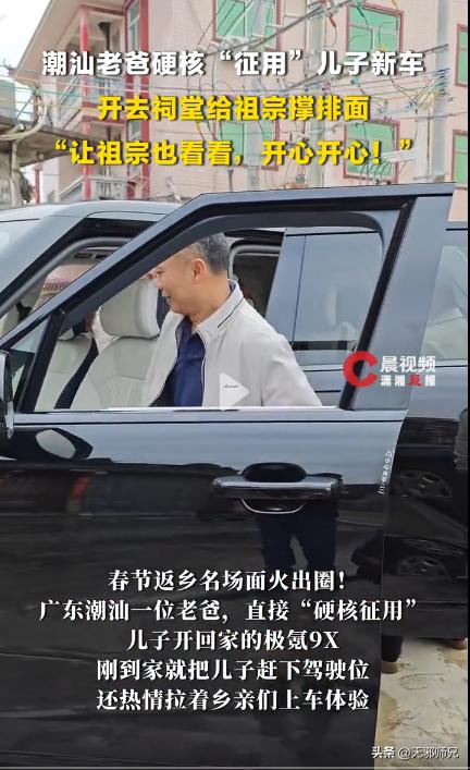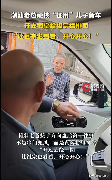 偏偏这时候赶上家族祠堂祭祖,父亲看儿子买了新车,二话不说拿了钥匙,把车里里外外擦得锃亮,直接开去祠堂了。