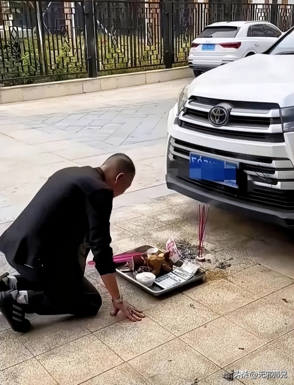 小伙这边呢?发现车被开走,又急又气。新车还没上正式牌照呢,自己都没舍得开远路,父亲倒好,直接开去祠堂折腾。