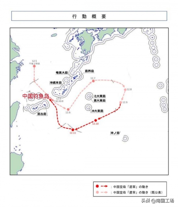 日本方面公布的,辽宁号航母战斗群本次出海的航线