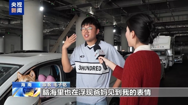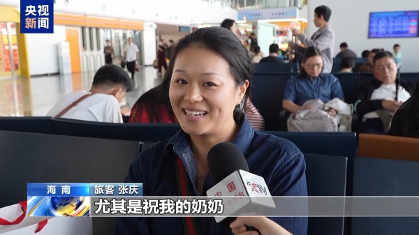 旅客 海热姑丽:以前都是我回新疆过年,家人供我读大学也挺不容易的,我现在已经上班了,我攒了一点钱带他们来海南旅游。