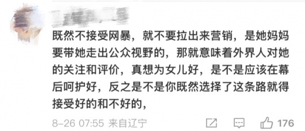 网友还说,孩子无辜,黄奕作为成年人,在这个事件中却并不无辜。如果不是她把自己女儿推出来,想要营销母女亲情、岁月静好人设,她的女儿又怎么会站到风口浪尖?