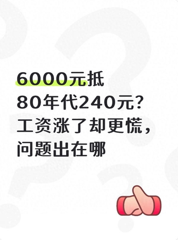 打开工资条看到6000元,你可能觉得不算多,但这笔钱放在80年代,相当于240-260元,是当时全国职工平均月薪的3.7-4.1倍。按道理说,收入翻了好几倍,日子该过得更滋润才对,可为啥现在很多人拿着6000元,反而比父辈当年拿几十块钱时更紧张?