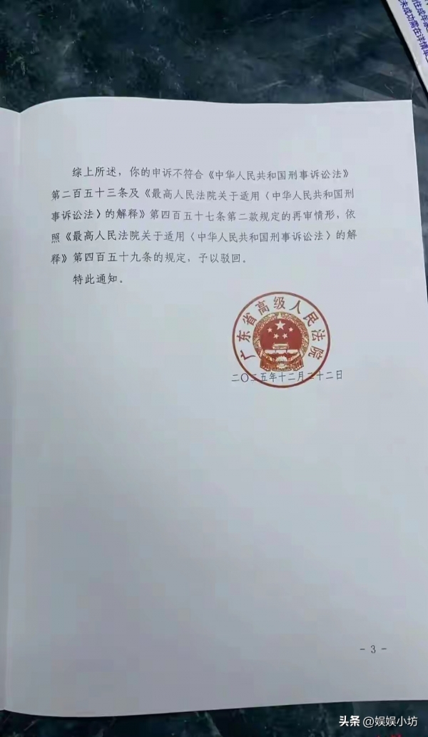 出来后他开始申诉,说自己冤,跑了很多地方,一级一级往上告,直到2025年12月,广东高院正式驳回他的申诉,说原判决没问题,不符合重审条件。