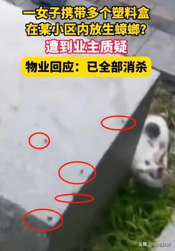 还有前段时间,有网友拍到一位神神叨叨的女子在自家小区楼下"放生蟑螂"。