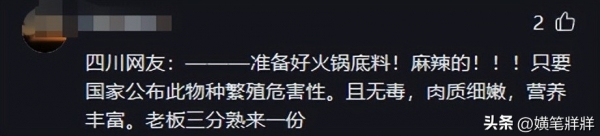 最后,在知道首次出现在四川的扁头虫对人暂时无害后,还有不少人在评论区开启了玩笑,一副想把"入侵物种"做成火锅吃一吃的感觉。