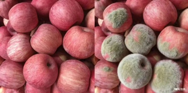 一箱正常的苹果,在拍摄照片后,可以利用AI修改为发霉苹果图片,整个过程只需要数秒。随后将发霉照片发送至商家要求售后,在未仔细辨别的情况下,商家很容易上当受骗。