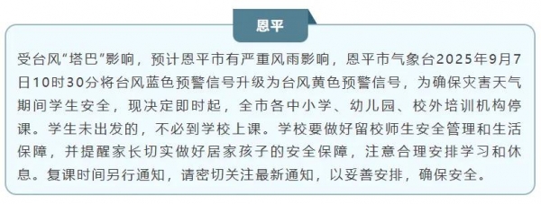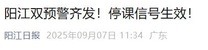 据@广州天气,按照《广东省气象灾害防御条例》规定,当气象部门发布台风黄色、橙色、红色或者暴雨红色预警信号为停课信号,停课信号生效期间,托儿所、幼儿园、中小学校应当停课。