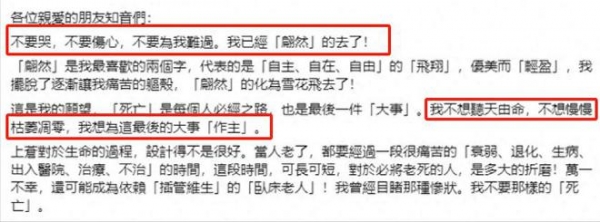 与其在衰老中溢美于长寿,不如在人能自主的时候收尾结局。