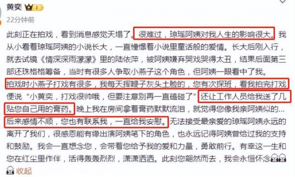 很多明星都发布了悼念琼瑶的文章,他们的文章各有千秋。
