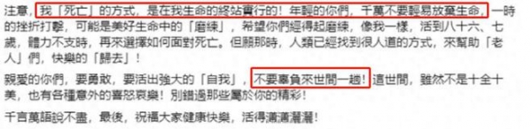 她认为靠着器械"苟活"的生活不是她想要的,所以选择了最直截了当的方式。