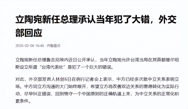 对此,2026年2月6日,外交部回应,希望立陶宛早日改正错误,为中立关系的正常化积累条件。