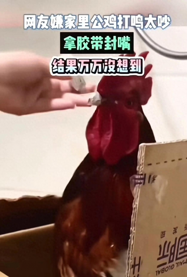 大清早的,一只公鸡站在院子里,嘴被缠了好几圈透明胶带,严严实实,连喙都合不上。它脖子一挺,脑袋一扬,居然又"喔--喔--"地打起了鸣。屋里那位刚被吵醒的女主人差点跳起来,盯着那鸡看了足足十秒,心里直犯嘀咕:这玩意儿嘴都封死了,声儿是打哪儿冒出来的?
