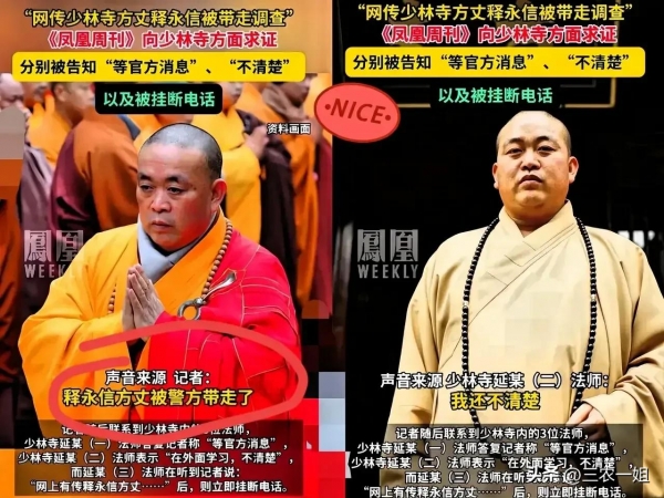 不信谣,不传谣,不造谣,网络并非法外之地。释永信作为少林寺的高僧,在少林寺的地位非常高,影响力也非常的大,关键网传它是一个色彩比较浓的一个少林寺方丈,也可以说是身价最高的一个和尚,如果真的要是被逮了,而且正在调查之中,这确实令人震惊。