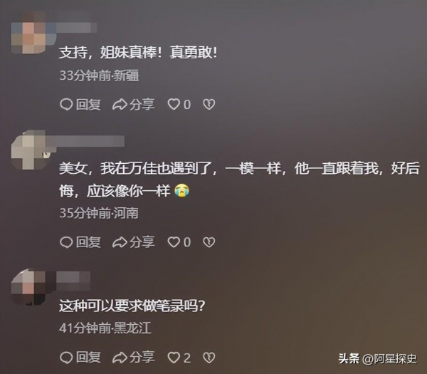 曾经有过这种遭遇的网友表示,后悔没有像这名女子一样大胆的站出来。有时直面问题比逃避问题更有效。