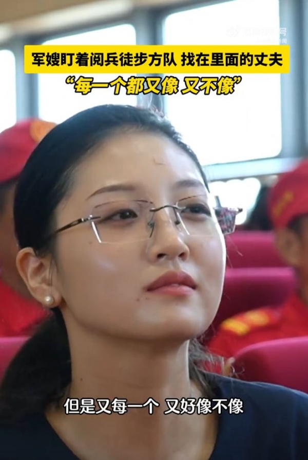 大家习惯把镜头和掌声留给走在队列中的军人,而他们背后的家人往往只是一句"默默支持"。实际上,像这位军嫂一样的人,她们的生活同样有不为人知的付出。找不到丈夫的身影,却仍然自豪,这是信任,也是对自己选择的一种认同