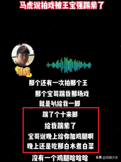 有一次王宝强踹了小演员十几次,腿都青紫了,笑着说晚上给他加鸡腿,最后也没有。