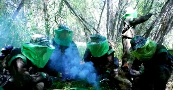 边防的战士们会在训练前穿上防蚊服,在到了训练地点后就直接点燃牛粪,利用牛粪燃烧产生的烟雾驱赶蚊虫。