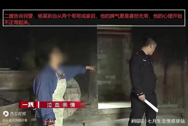 其实杨某新本身内心很自卑,他只能通过自己的过激行为来引起家里人的重视,获得存在感,而自从二哥大哥娶妻生子后,他内心的自卑感越来越重。