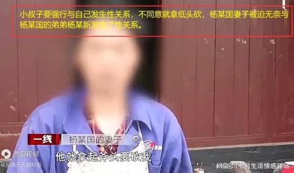 被迫无奈之下她最终还是把整件事情告诉了远在外地打工的丈夫杨某国,这时杨某国才知道弟弟竟然在家里对自己的妻子做下了此等荒唐事。