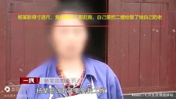 大哥在此时也认为这事可不得了,要是处理不好得兄弟反目,这是他最不想看到的,于是让家里人先对二弟杨某国进行了隐瞒,自己先回到了家里,对杨某新进行劝说,没想到这个杨某新竟然说把二嫂给娶了,做他的妻子!