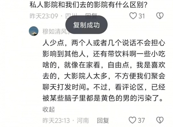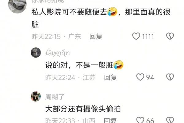 更有网友表示,私人影院可不要随便去,那里面真的很脏。