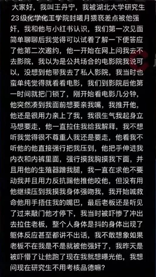 湖北一女大学生自述,就在2025年2月18号,自己和一名男网友去私人影院看电影,结果就在看的正起劲的时候,结果这名男网友突然动手动脚的。