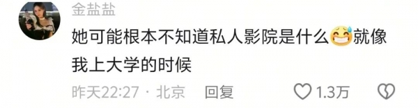 有的网友说, 她可能根本不知道私人影院是什么就像我上大学的时候, 一样,我刚上大学,蠢的跟啥一样,单纯的要死,上了一年,嗯,就知道这些地方不是好地方。