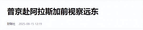 俄总统新闻秘书佩斯科夫指出,普京在赴阿拉斯加会见特朗普前,会飞抵远东地区马加丹州进行视察,当地工业企业并与州长举行会谈,预计将在此地停留数小时后再飞往安克雷奇。