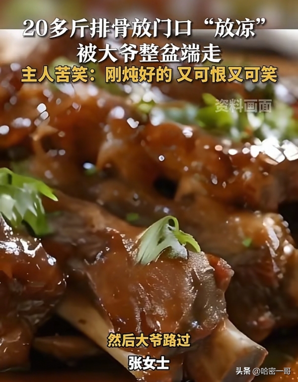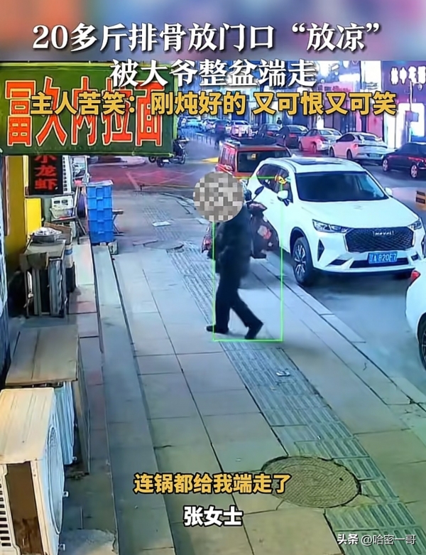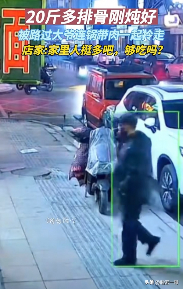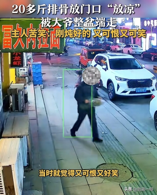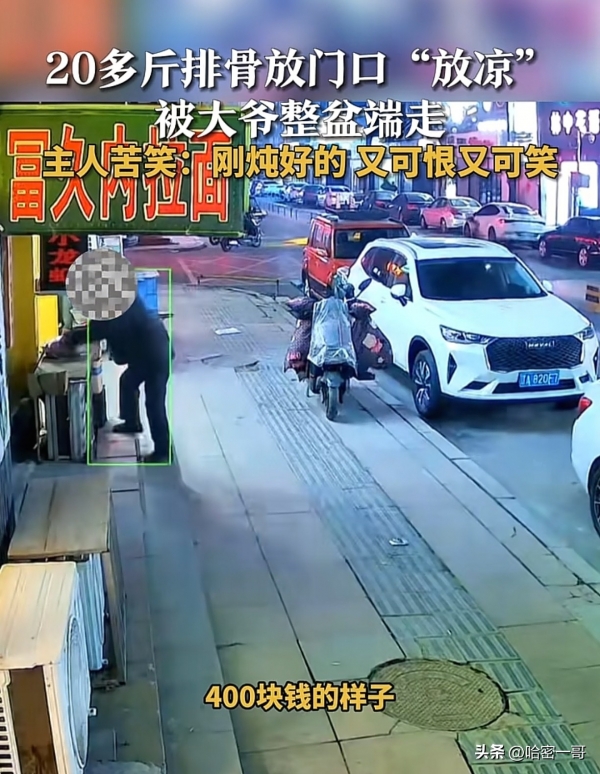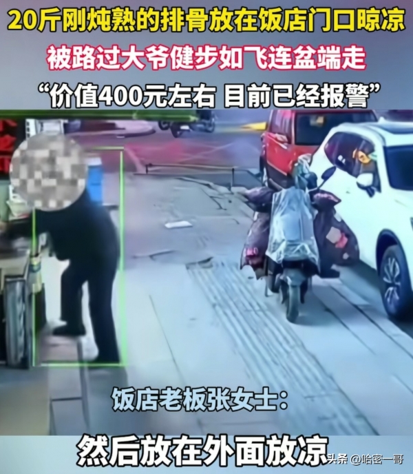 近日,一段视频在网上引发热议,视频中一位大爷将人家晾在店门口的20斤炖好的排骨整盘端走,就好像自己刚煮熟的一样。