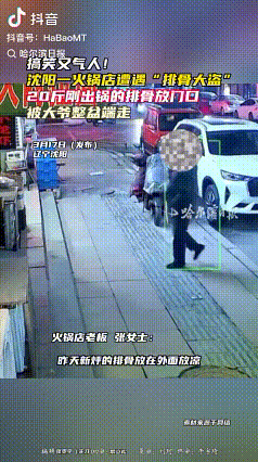 紧接着他左右张望了两圈,看周围没人注意、店里也没人出来,直接弯腰端起了那盆沉甸甸的排骨,转身就走,那步子走得从容淡定,似乎还挺窃喜。